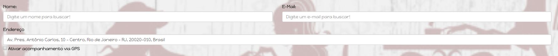 Você pode realizar uma busca personalizada com base nas informações de Nome, E-mail, Endereço e ainda utilizando sua localização em tempo real via GPS, para isto basta habilitar a opção "Ativar acompanhamento via GPS".