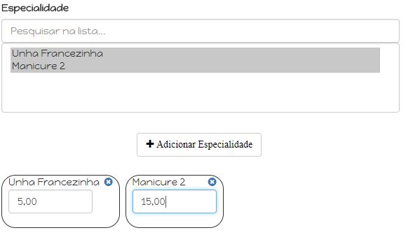 Caso esteja no celular, ao selecionar um serviço, click na caixa de Especialidades para selecionar e confirme para incluir uma nova!