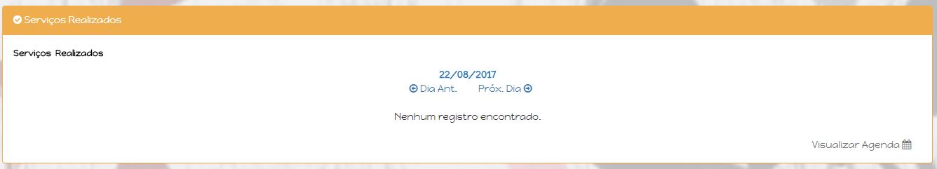 Na caixa de "Serviços Realizados", você irá verificar os últimos serviços realizados por aquele usuário. Você pode navegar pelos dias, clicando nas setinhas de anterior e próximo, pode clicar na data, para selecionar um dia específico, também pode clicar no link Visualizar Agenda, para ver todos os compromissos daquele usuário.