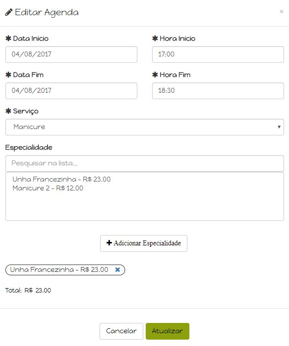 Hora Fim: Horário em que deseja que seja finalizado o atendimento.