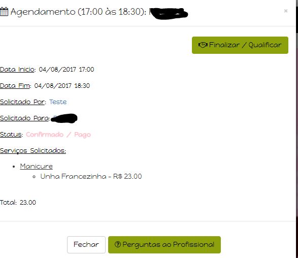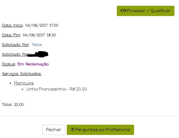 Com seu agendamento pago, após realizar o serviço, ambas as partes precisam qualificar, caso não seja qualificado em um prazo máximo de 7 dias, o sistema irá automaticamente finalizar o pedido com sucesso.